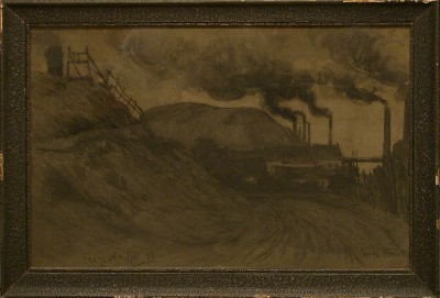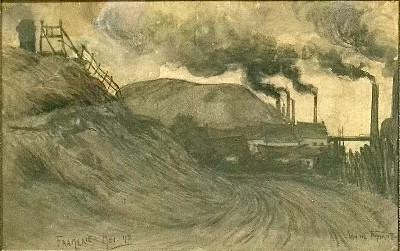 In het jaar 1898 maakt Jan de Waardt, samen met zijn goede vriend Herman Heijenbrock, een reis naar de Borinage, een streek in het Waalse steenkolenbekken. In één van de mijndorpen daar, Frameries, ten zuidwesten van de stad Mons (Bergen), maakt hij in mei 1898 de bovenstaande schets van een steenkolenmijn met rokende schoorstenen en bergen mijnafval, zogeheten terrils. En deze tekening duikt jaren later - in de jaren 1980 - op, op een rommelmarkt in Den Briel. Dat is een mooi verhaal! Het verhaal wordt verteld door Jaques de Rhoter, de vinder van de tekening. Hij treft het werk aan, daar in Den Briel, verwaarloosd en in een beschadigde donkergrijze lijst. Hij mag het meenemen voor het luttele bedrag van vijf gulden. En dan begint een lange zoektocht. De tekening is gesigneerd, met een volledig uitgescheven naam. En in de linkeronderhoek staat "Frameries Mei 98". Maar ja, Google bestond destijds nog niet. Dus: wie is Jan de Waardt, en waar ligt Frameries? In een spannende vervolgreeks van meerdere blogs - geschreven eind 2012, begin 2013 - schetst De Rhoter hoe hij stap voor stap nieuwe brokjes informatie vindt: Heijenbrock, Borinage,... Hij laat de tekening schoonmaken. Hij reist af naar Frameries om ter plaatse onderzoek te doen. Hij duikt zelfs een oude foto op van één van de mijnen in het dorp, namelijk van de Charbonagge de Crachet Picquery. Zou dit de mijn op de tekening zijn? | Uiteindelijk stuit hij op het artikel van Jeroen Kapelle uit 2010 (zie elders op deze site), met een fotootje van De Waardt. Zo krijgt de kunstenaar opeens een gezicht. En er is meer: Jan de Waardt blijkt vanaf 1904 in Oostvoorne te wonen - op een steenworp afstand van Den Briel. En hij kampt met een alcoholverslaving. Dat brengt De Rhoter - in het laatste deel van de reeks - tot de volgende onbewijsbare, maar wel redelijk aannemelijk klinkende verklaring, over hoe dit bijzondere werk op die rommelmarkt terchtgekomen is: "Vast en zeker geruild voor een fles jajem of om een openstaande caférekening te voldoen en tenslotte door de kleinkinderen van de nieuwe eigenaar weggedaan. Wat moesten ze met zo’n vuile prent?" Zoals gezegd: het zou zo maar kunnen... En dat roept meteen de vraag op, ook al zijn we ondertussen bijna 40 jaar verder: zou er nog meer onbekend werk van Jan de Waardt op het eiland Voorne aanwezig zijn? |