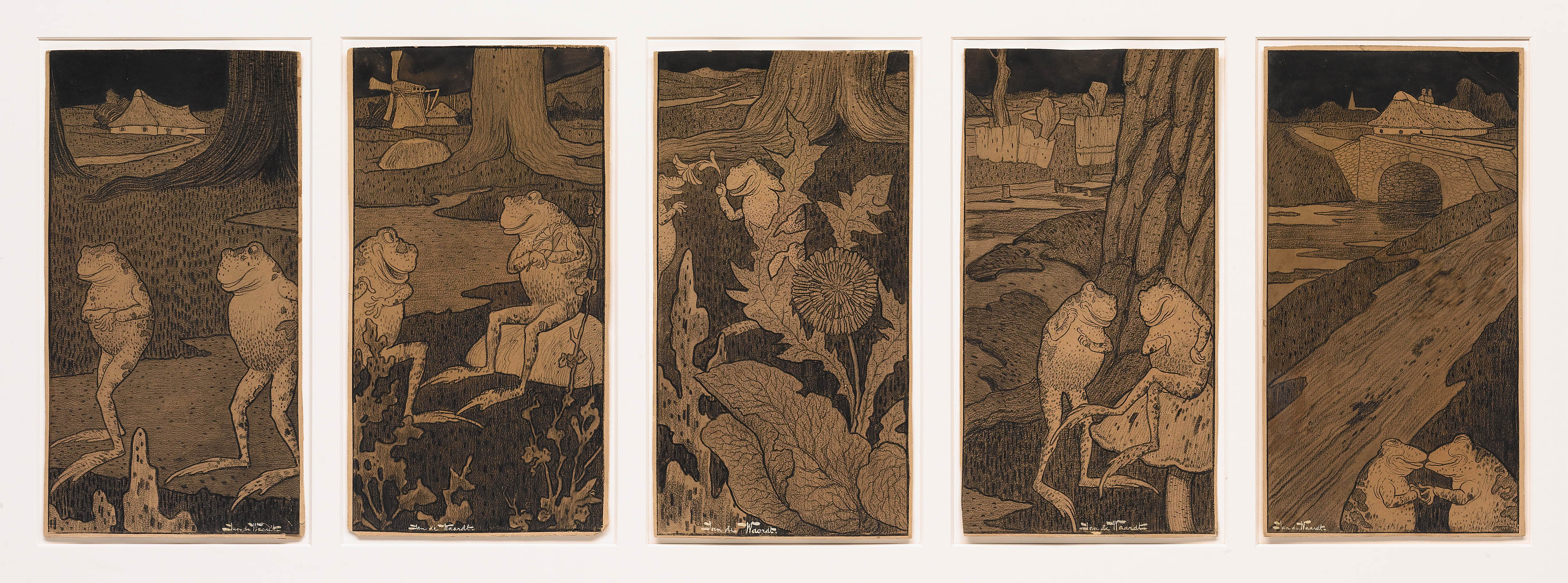 Het Drents Museum in Assen bezit een serie van vijf illustraties van De Waardt, met daarop scènes uit een verhaal over kikkers. Deze tekeningen zijn in 2010 geschonken door Jan Jaap Heij, bij zijn afscheid als conservator van het museum, als voorbeeld van "soms vrijwel geheel onbekende kunstenaars die zijns inziens het verzamelen en bestuderen ook waard" zijn. Zie het artikel van Jeroen Kapelle in het DM Magazine hieronder. | Ook het Museum Helmond bezit een aantal ontwerpen voor dit boek over kikkers: "Op de titelpagina staat: 'Een droeve kikkergeschiedenis - Aan kleine Truusje verteld door H.de Koning' geïllustreerd door Jan de Waardt; maar het boek is waarschijnlijk nooit uitgegeven; er zijn geen sporen van zo’n uitgave te vinden". |